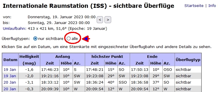 oder klicke auf "alle" Überflüge